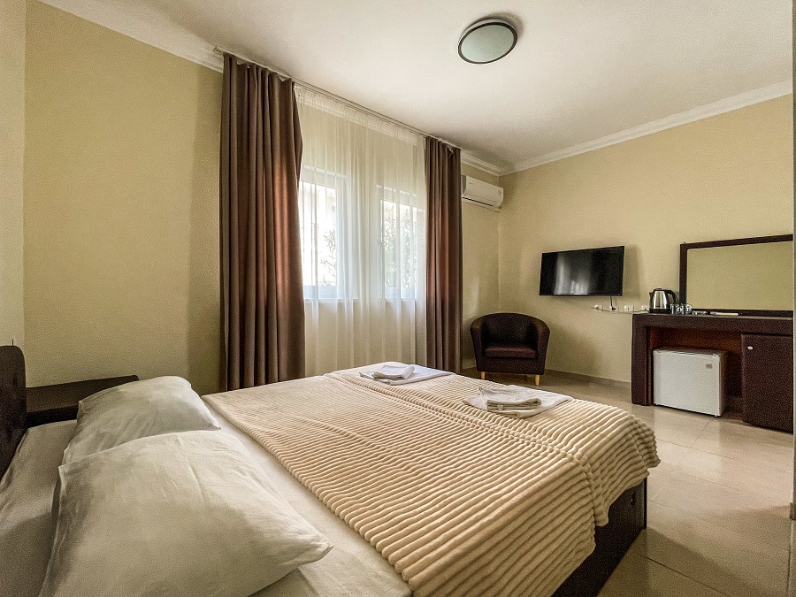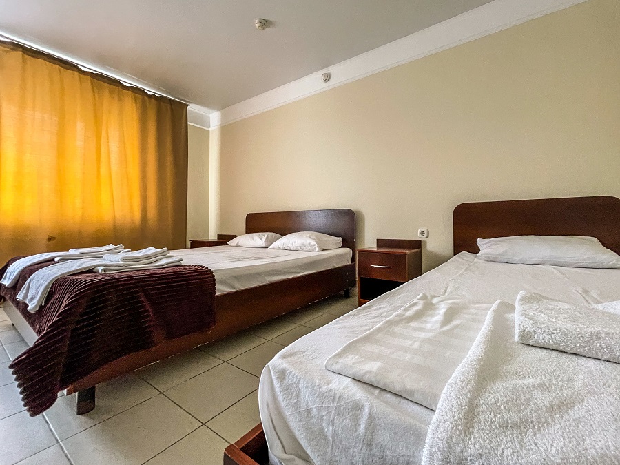 В номере: телевизор, кондиционер, санузел, душ, холодильник, балкон, 1-спальные/ 2-спальная кровать